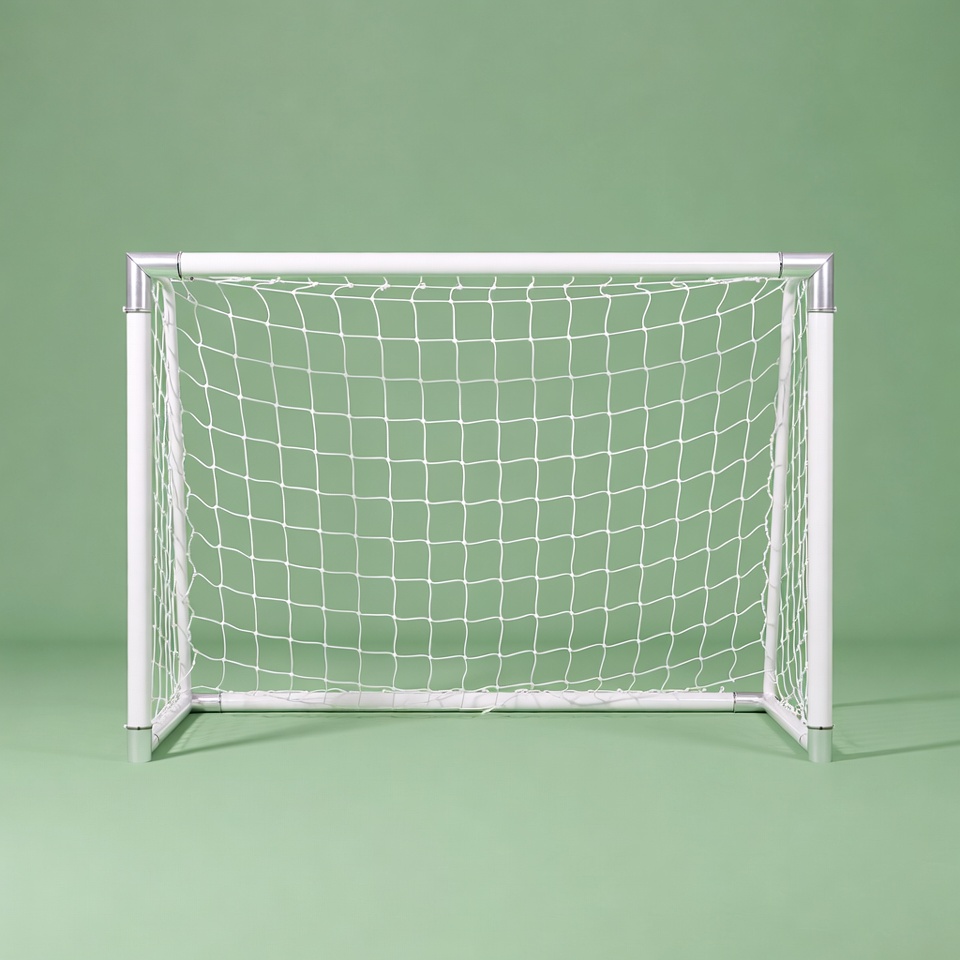 football, football goal, goal frame, goalie net, goalpost, green background, isolated background, net, silver frame, soccer, soccer net, sports equipment, white net, soccer goal
