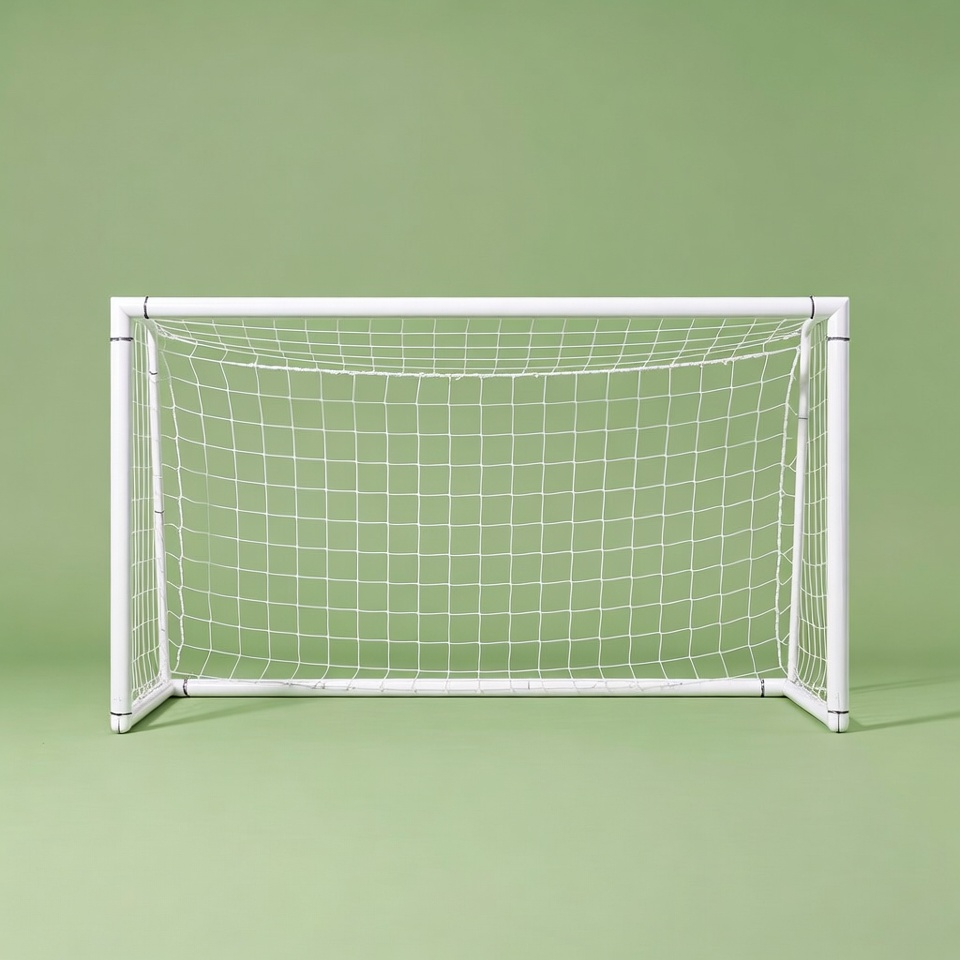 3D render, empty goal, football goal, goal frame, goalie net, goalpost, green background, isolated, net, soccer field, soccer net, sports equipment, white frame, white goal, soccer goal