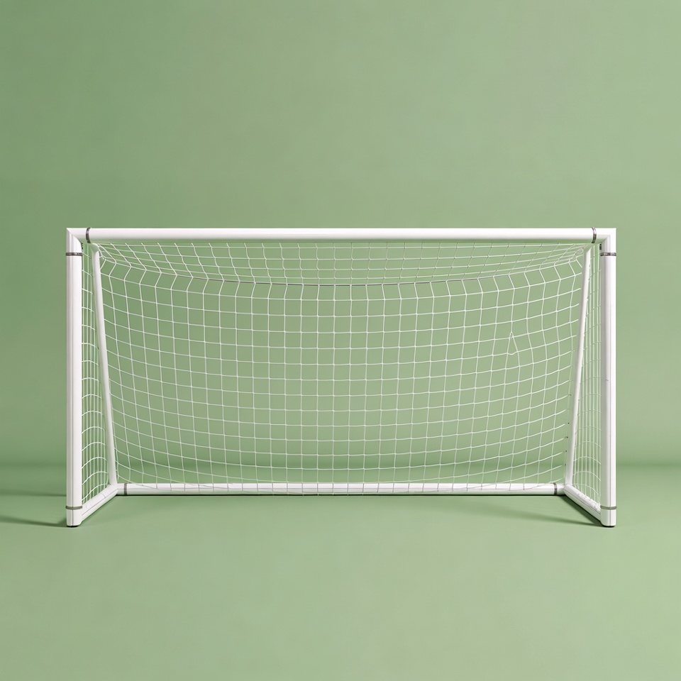 3D render, PVC frame, empty goal, football goal, goal frame, goalie net, goalpost, green background, isolated background, soccer field, soccer net, sports equipment, sports gear, white net, soccer goal