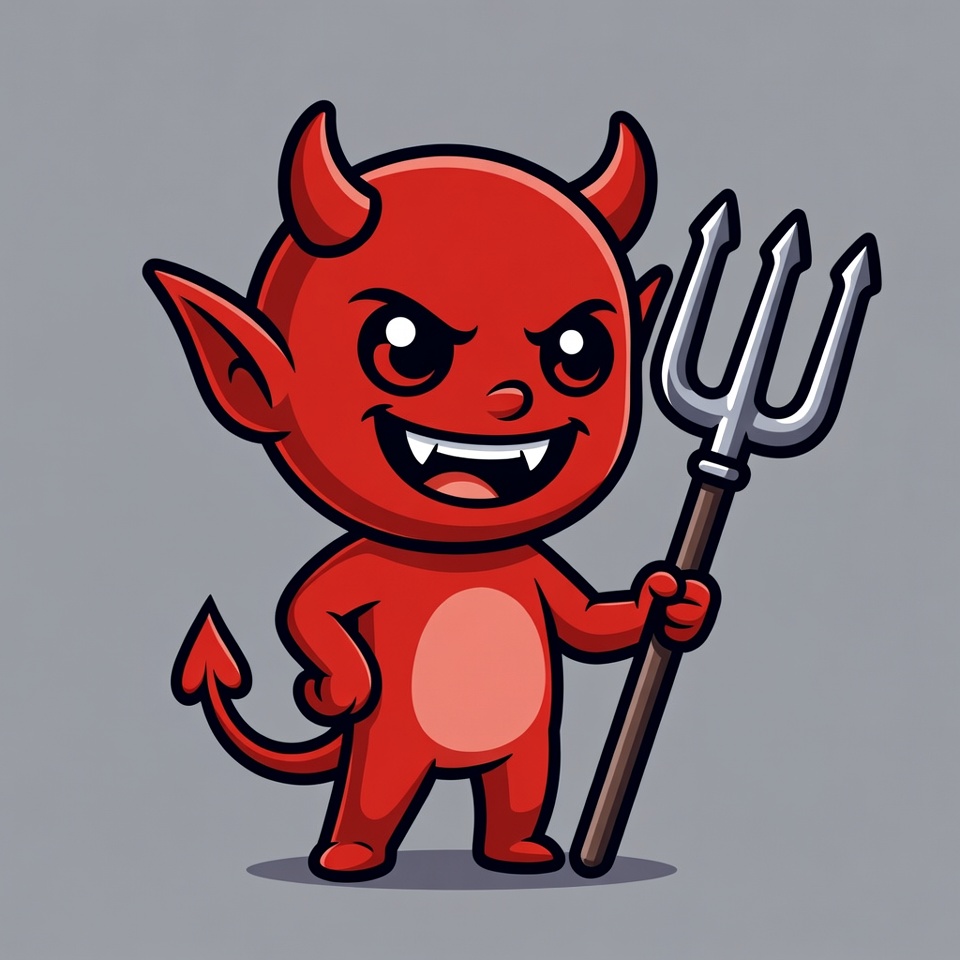 Cartoon red devil with pitchfork