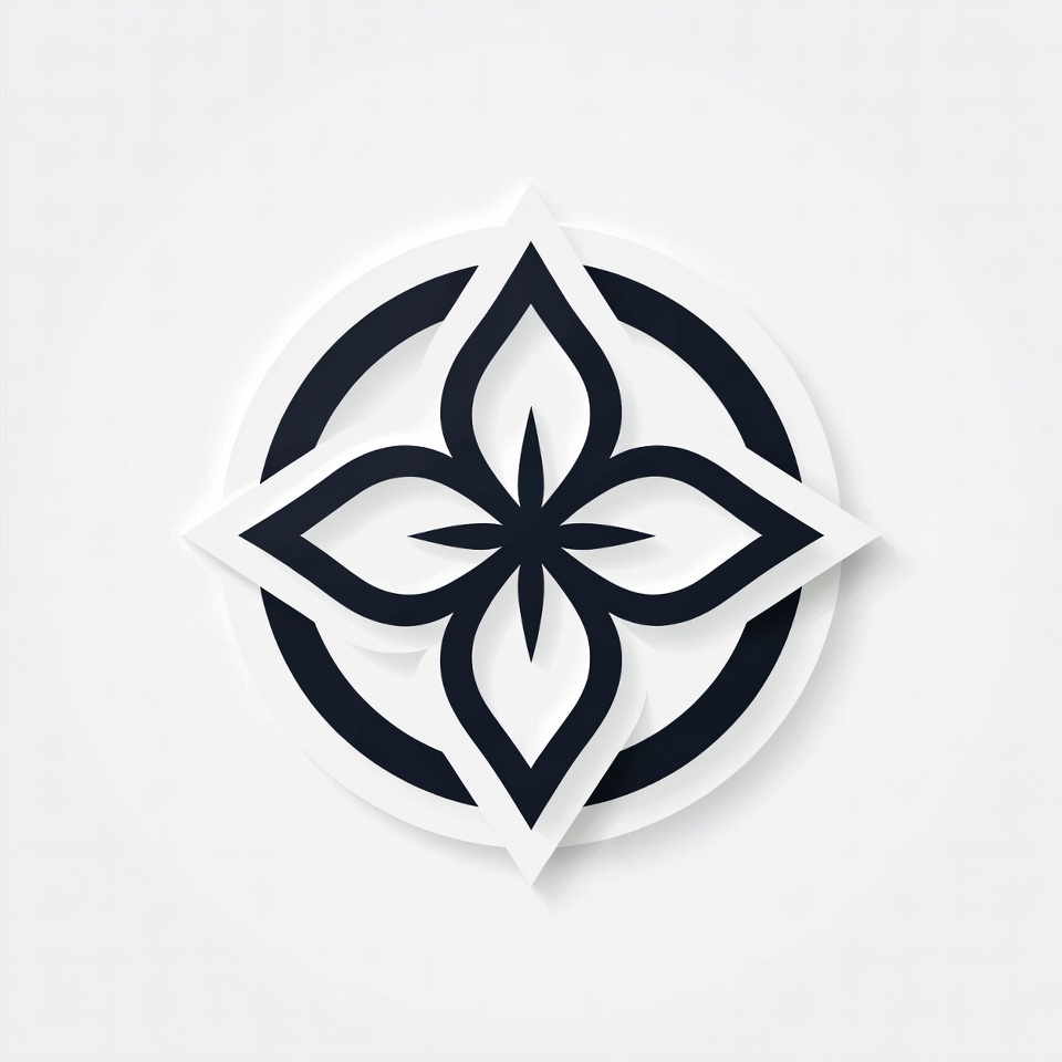 abstract flower, black outline, circular emblem, clipart, decorative motif, flower design, four petals, graphic element, illustration, isolated background, mandala art, symmetric pattern, vector art, white background, floral mandala