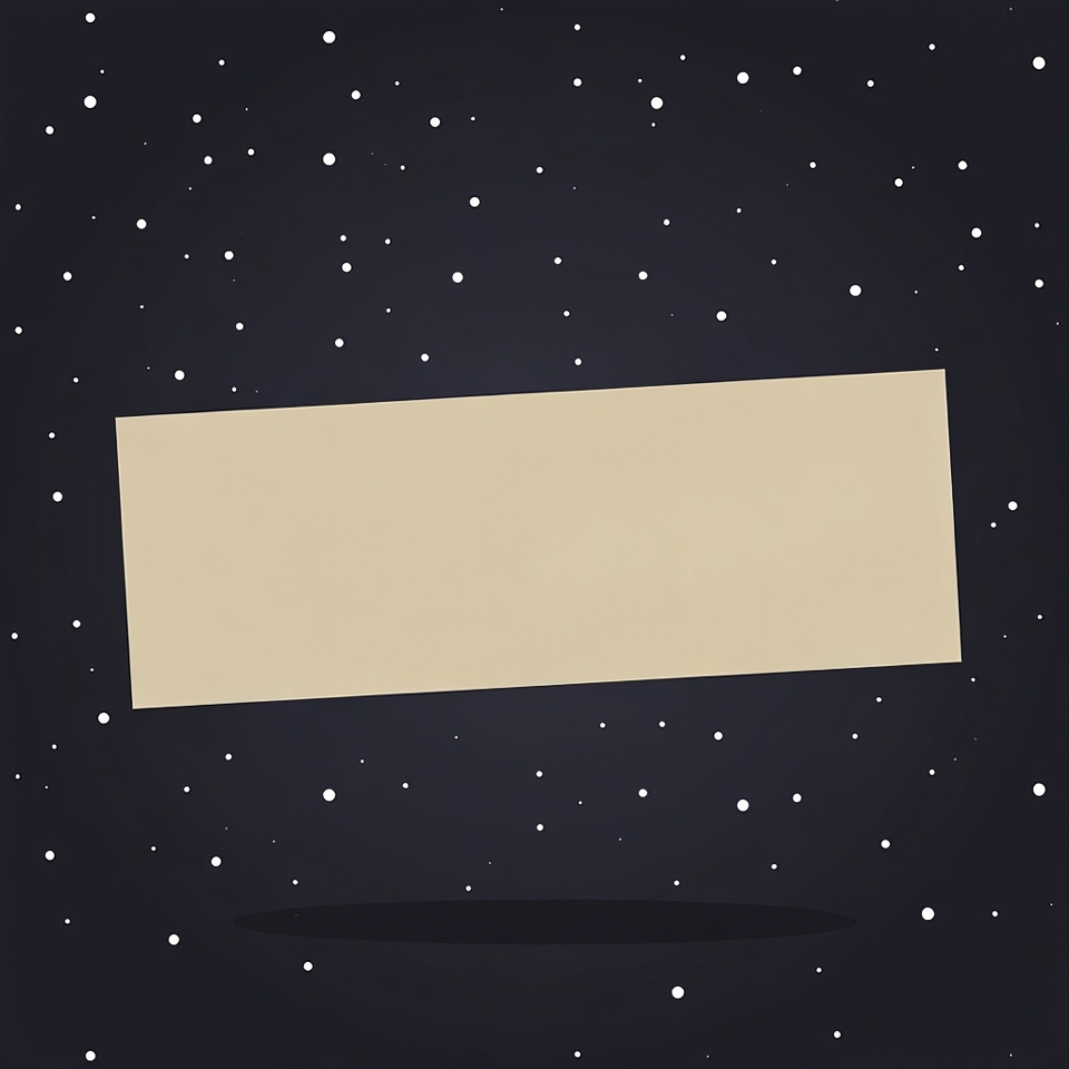 A simple beige rectangular sign with blank space floats against a dark night sky filled with white stars. The sign has a subtle shadow beneath it, giving a sense of depth. The background is entirely starry with no other elements.