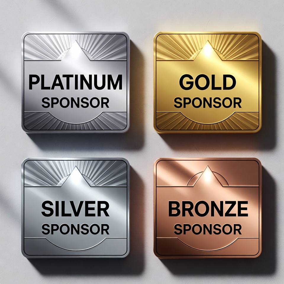 achievement badges, award badges, bronze badge, bronze sponsor, embossed badges, event badges, gold badge, gold sponsor, metallic badges, platinum badge, platinum sponsor, premium sponsor, ranking badges, shiny metal, silver badge, silver sponsor, sponsor levels, sunburst design, trophy badges, sponsor badges
