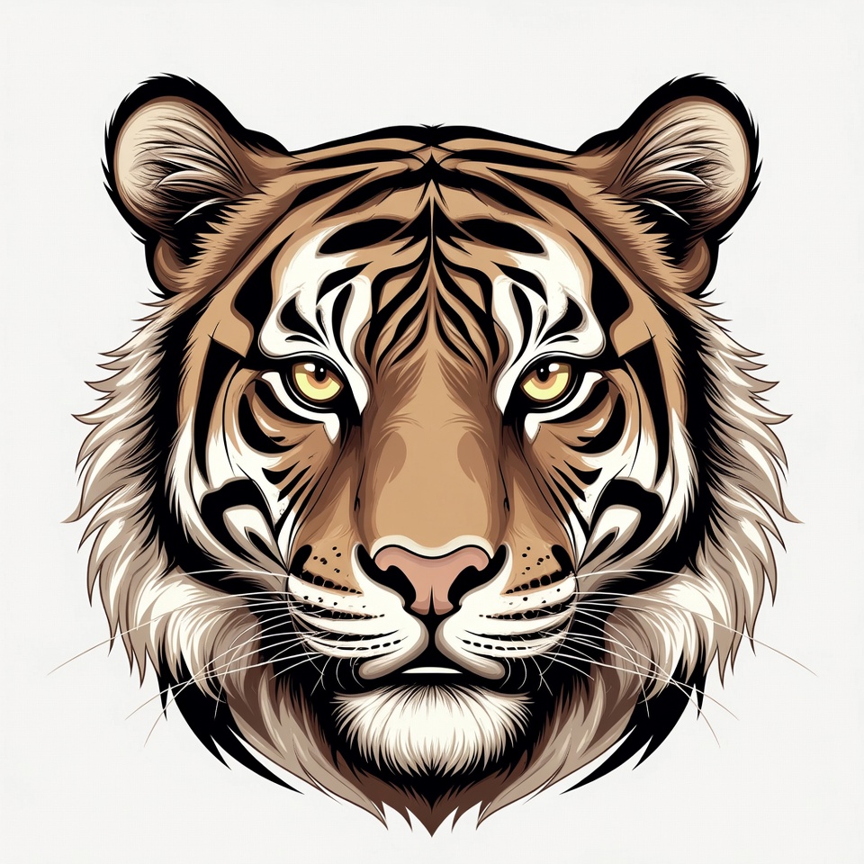 animal, big cat, black stripes, clipart, detailed, fierce tiger, fur, illustration, isolated background, majestic tiger, orange fur, realistic illustration, stripes, tiger face, tiger head, vector art, whiskers, wild animal, yellow eyes, tiger