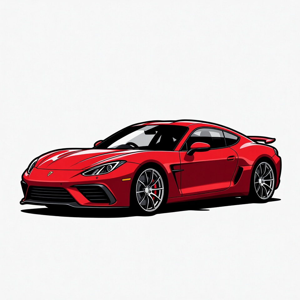 aerodynamic design, alloy wheels, car illustration, clipart, coupe, digital drawing, front grille, headlights, illustration, isolated background, luxury car, performance car, rear spoiler, red Porsche, red car, sports car, supercar, vector art, white background, Porsche