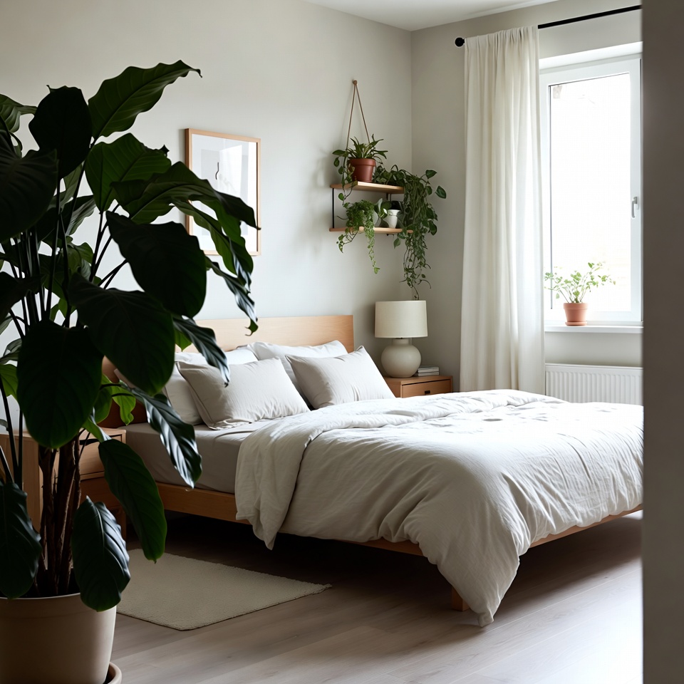 Cozy Bedroom with Large Plants