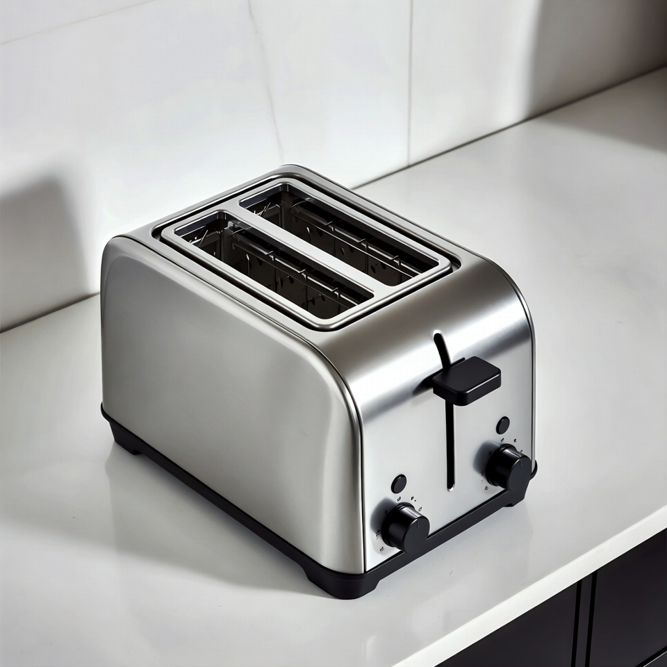 Silver toaster on white counter