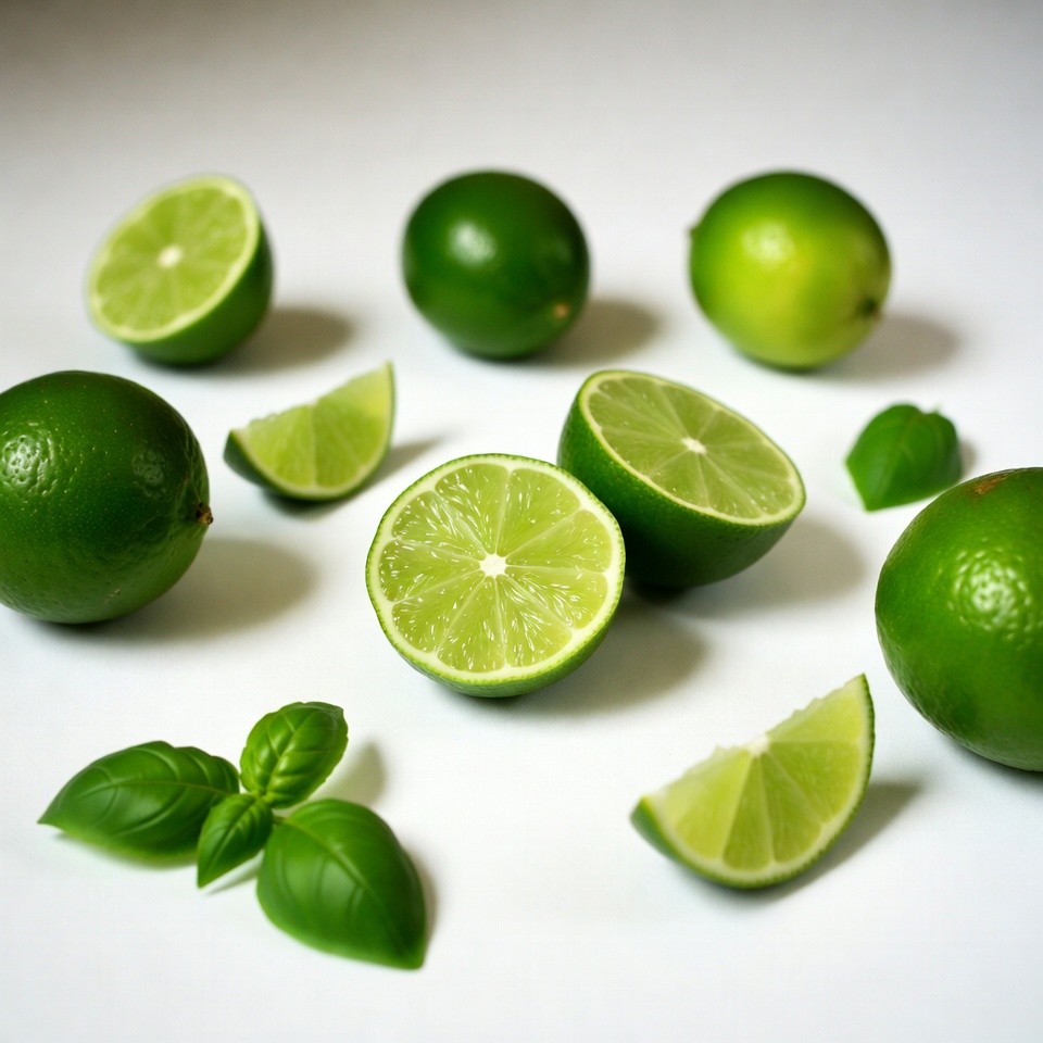 Fresh Limes and Slices with Basil