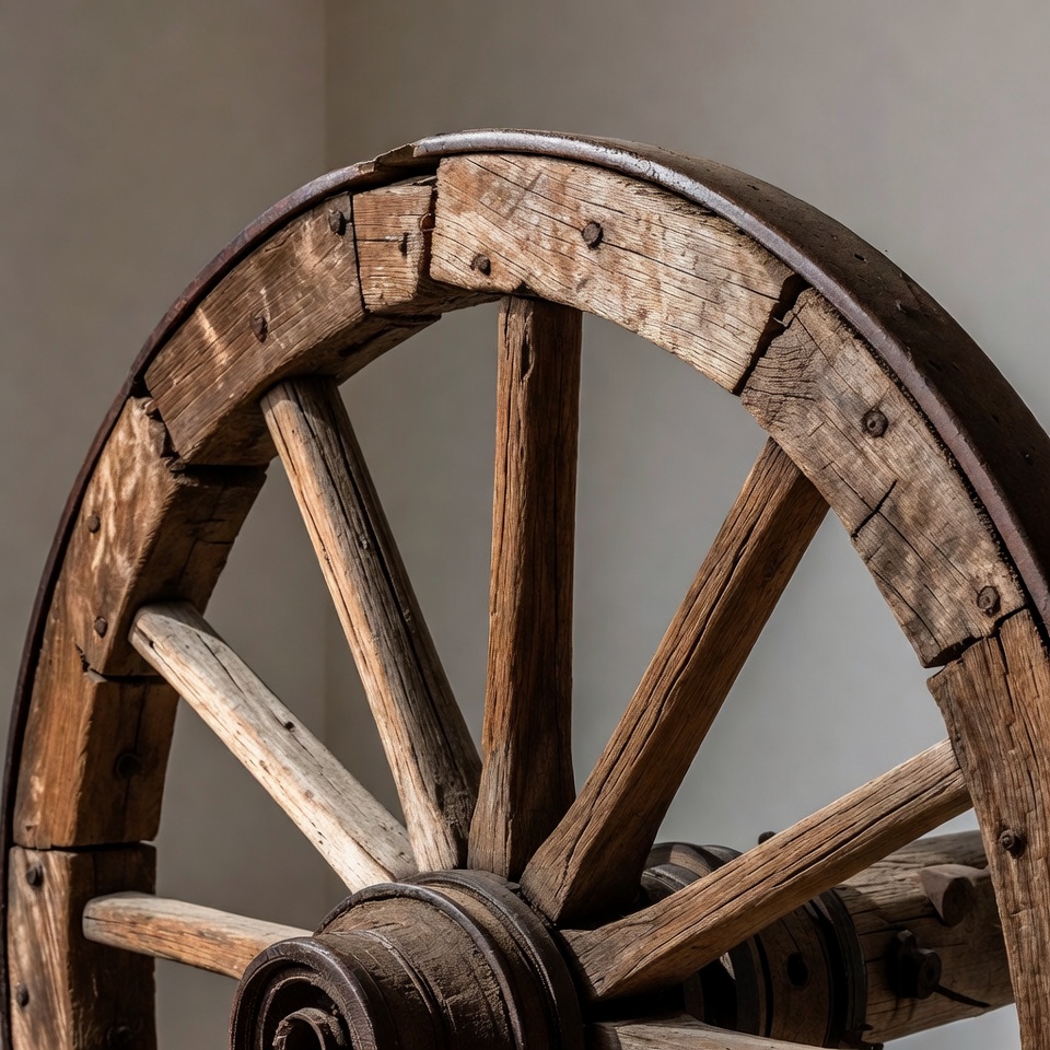 antique wheel, cart wheel, close-up, farm wheel, isolated background, nails, old wheel, rusted hub, rustic wheel, vintage wheel, weathered wood, wooden rim, wooden spokes, wooden wheel, wagon wheel