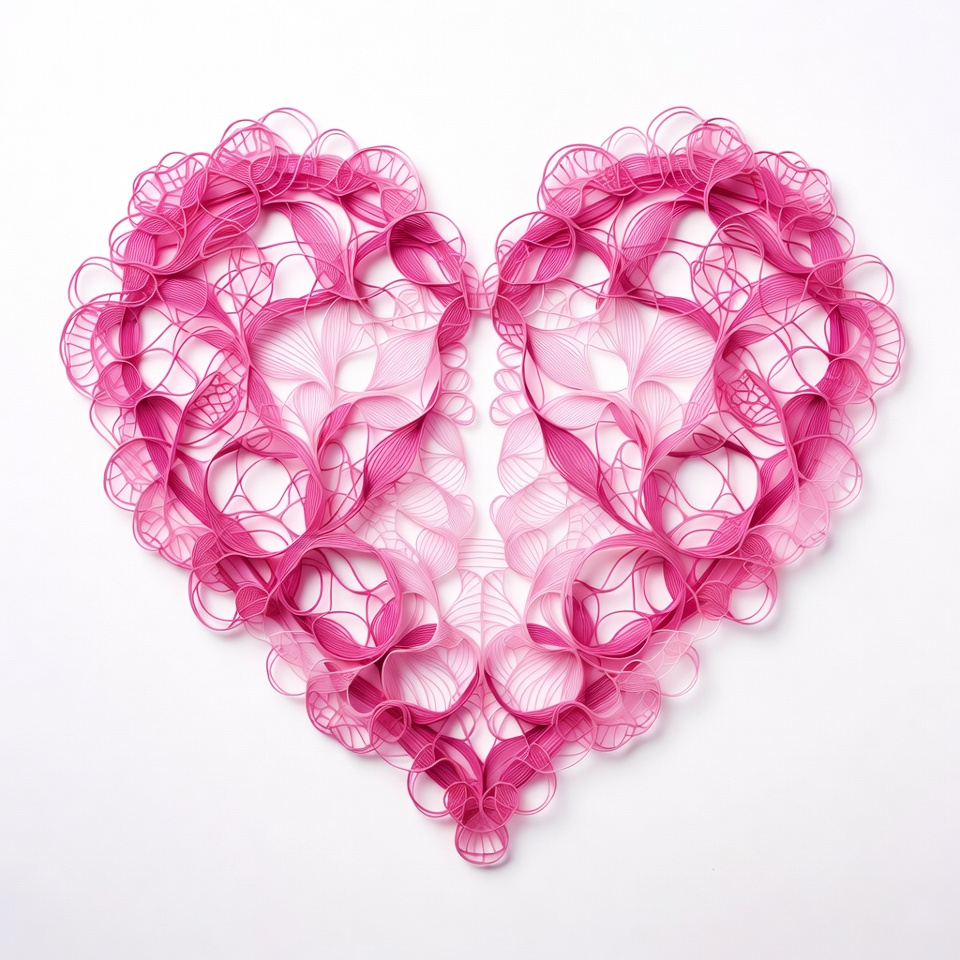 artwork, craft, decorative heart, filigree, handmade, intricate design, isolated, love symbol, paper craft, paper quilling, pink heart, pink paper, quilling, quilling art, ribbon art, romantic, swirl patterns, valentine, white background, heart