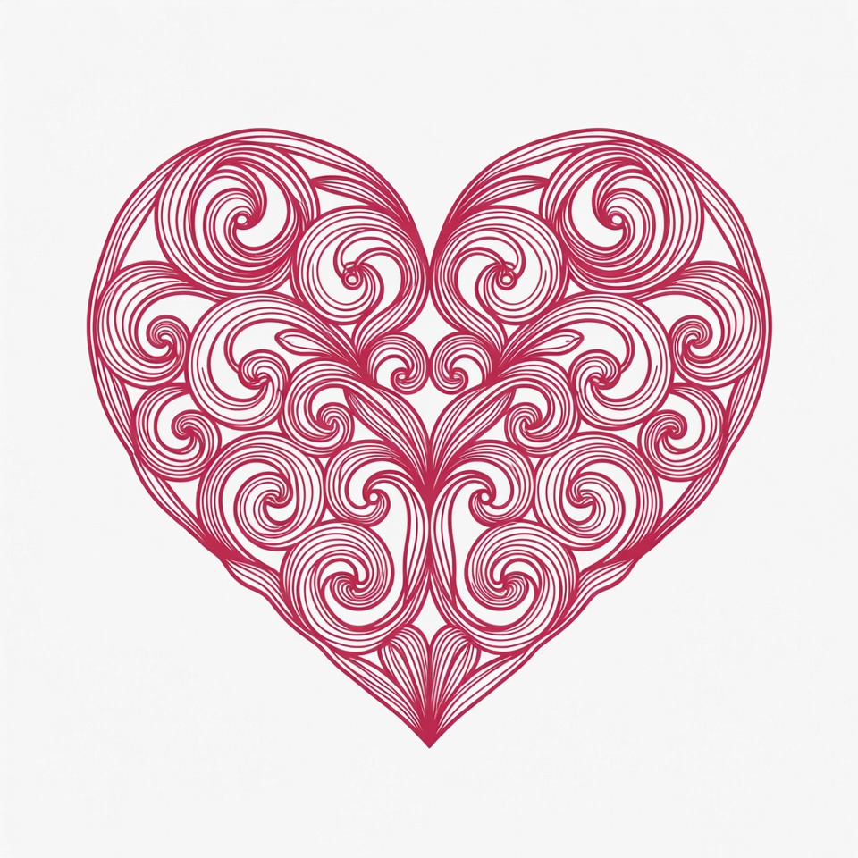 clipart, decorative heart, floral design, illustration, intricate design, isolated background, line art, love symbol, ornate heart, red heart, romantic, swirling patterns, vector art, heart