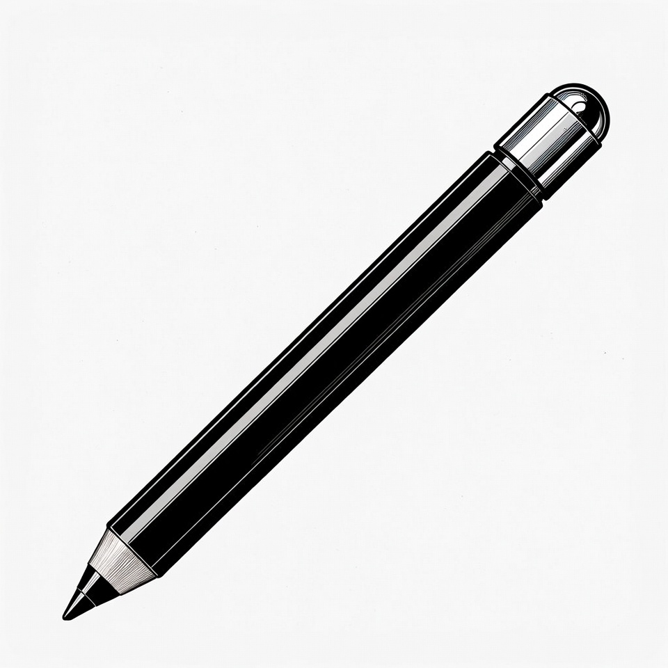 clipart, drawing tool, glossy black, graphite pencil, illustration, isolated background, metallic tip, office supply, pencil, school supply, sharp point, silver cap, white background, writing tool, black pencil