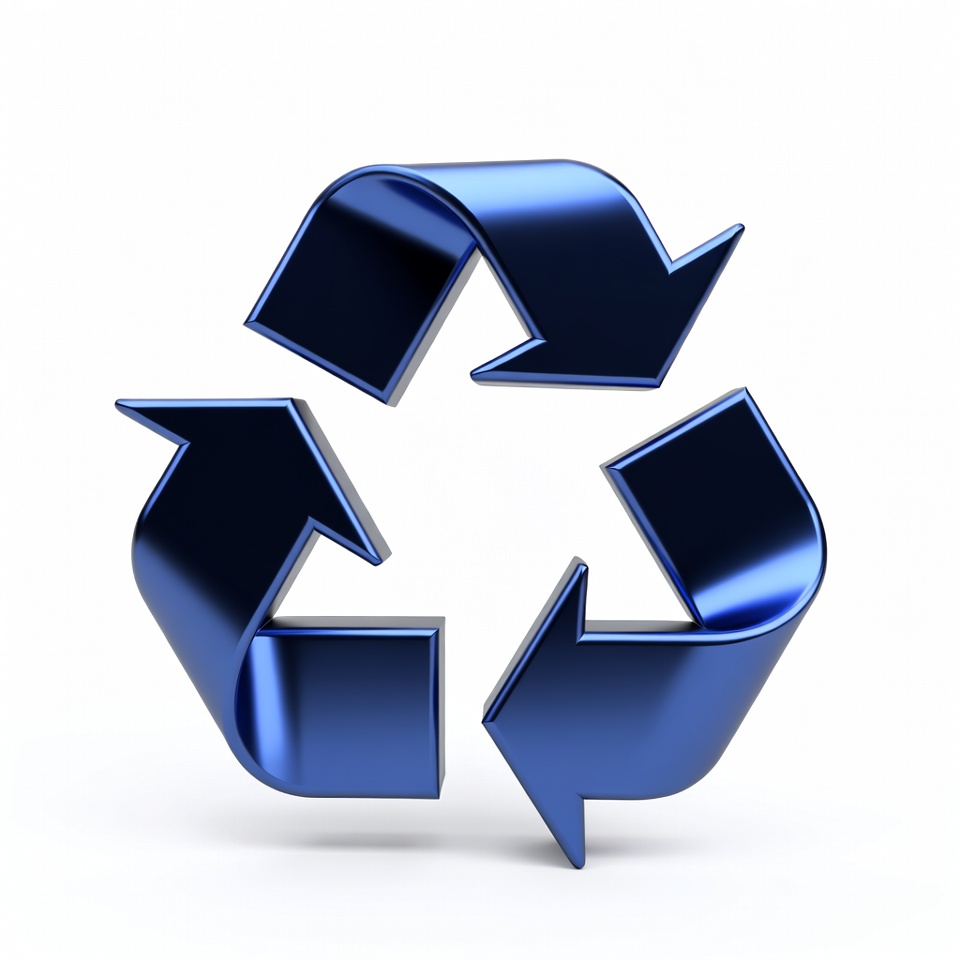 3D icon, blue arrows, eco friendly, environmental icon, glossy arrows, isolated background, metallic finish, recycle icon, recycling loop, sustainability, triangular symbol, white background, recycling symbol