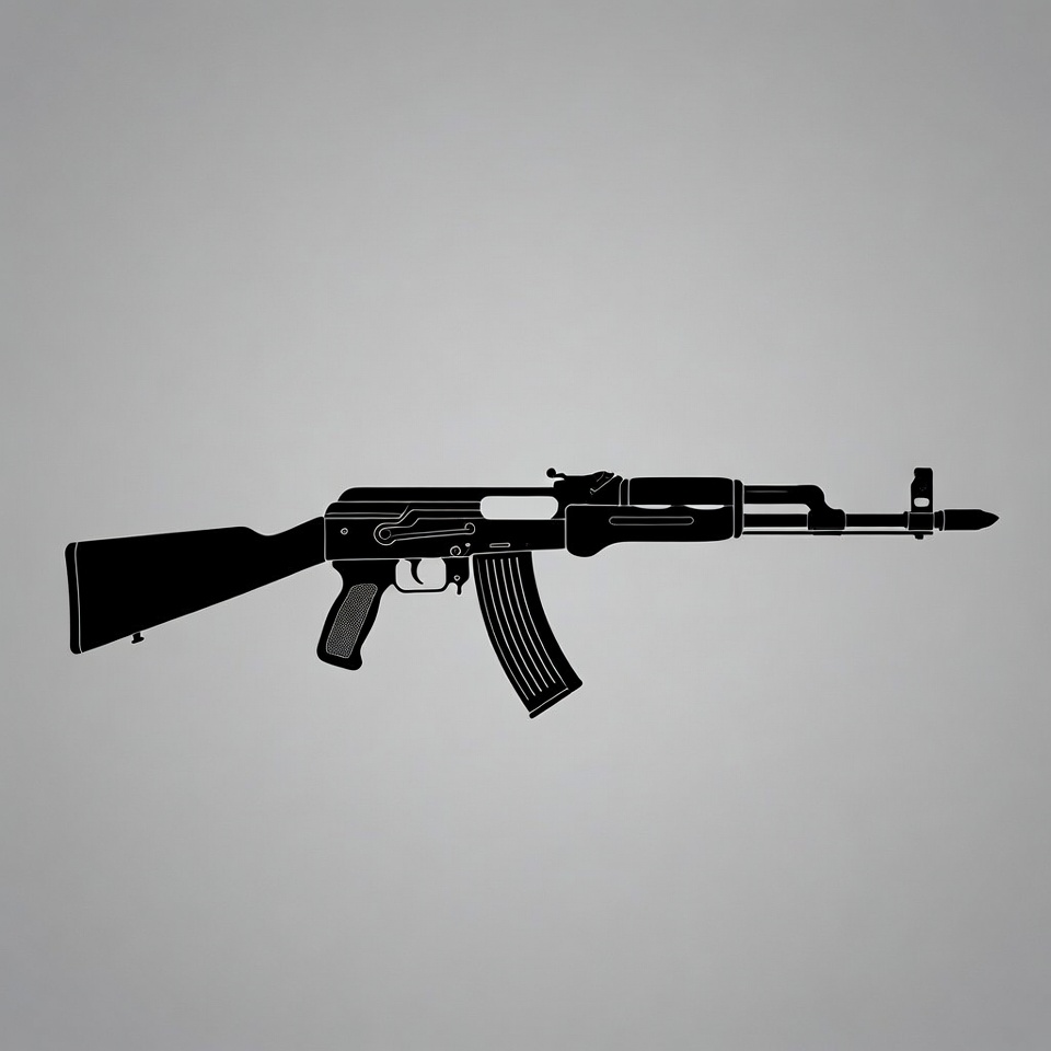 AK-47 Silhouette on Gray Background