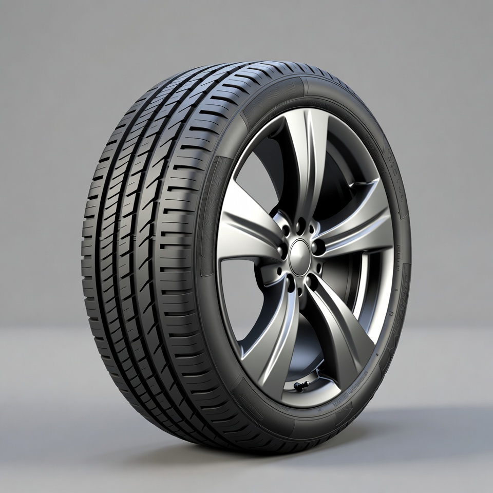 3D render, alloy wheel, automobile tire, automotive part, black tire, car wheel, isolated background, modern wheel, rubber tire, silver rim, silver wheel, spoke wheel, tire sidewall, tire tread, vehicle wheel, wheel rim, car tire