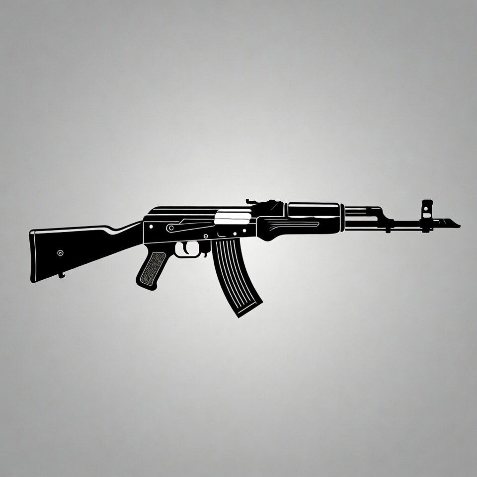 AK-47 Silhouette on Gray Background
