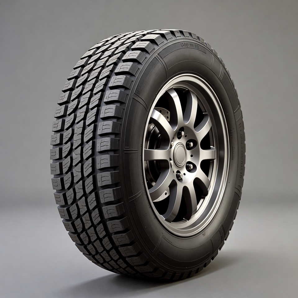 3D render, SUV tire, all-terrain tire, alloy wheel, automotive, gray background, isolated background, off-road tire, rim, rubber tire, tread pattern, truck tire, vehicle part, wheel, tire