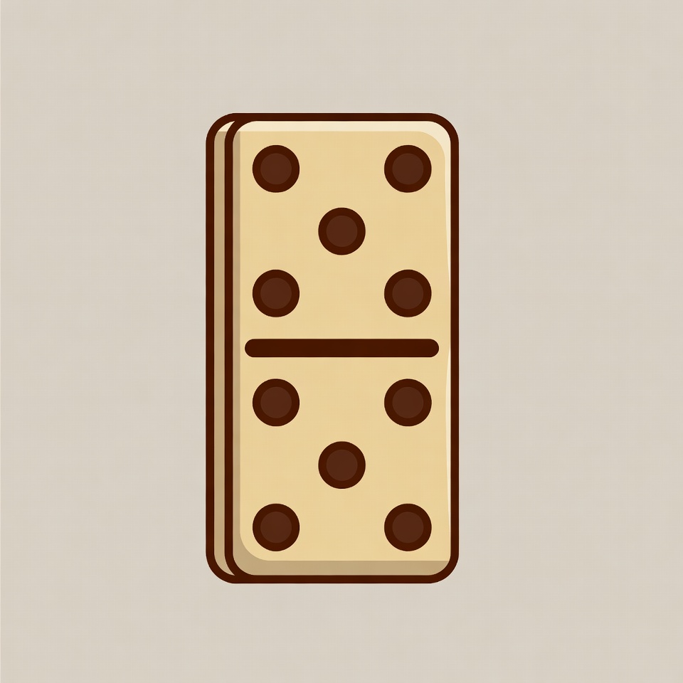 A simple illustration of a double six domino tile on a light gray background. The tile is beige with a brown outline and six brown dots on each half, separated by a dark line. It features a clean, flat design style.