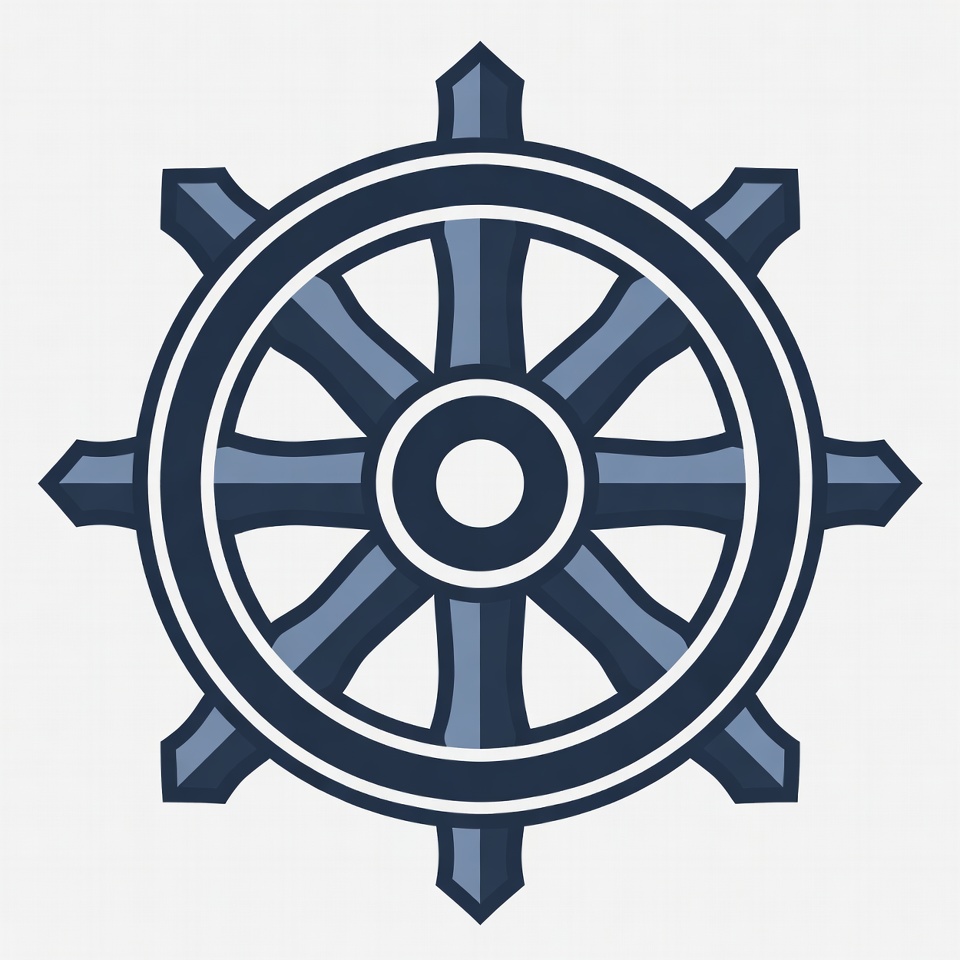 Blue Ship Steering Wheel Illustration