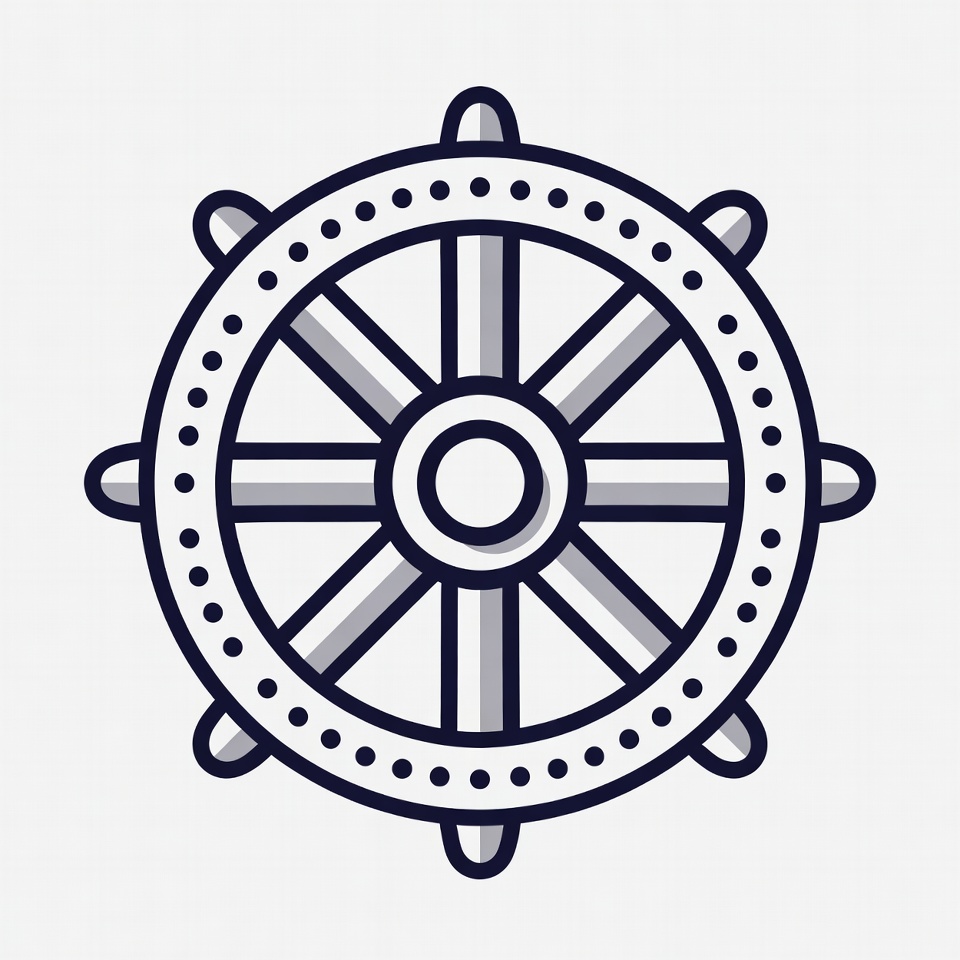 boat steering, clipart, flat design, helm wheel, isolated background, maritime, nautical wheel, navigation, ocean vessel, sailing, ship helm, ship wheel, vector graphic, wheel illustration, steering wheel
