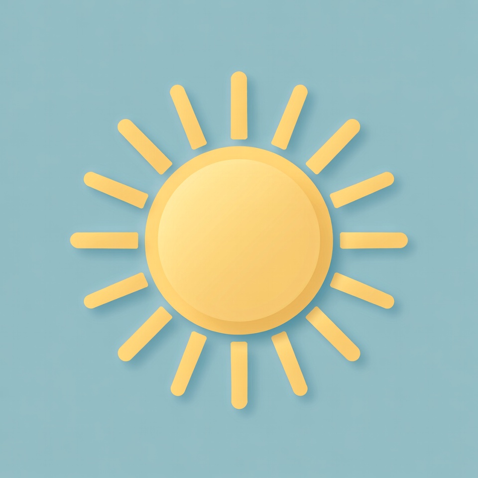 A vibrant yellow sun with radiating rays is centered on a light blue background. The sun features a smooth circular center and pointed, evenly spaced rays. The design is flat and illustrative with clean edges.