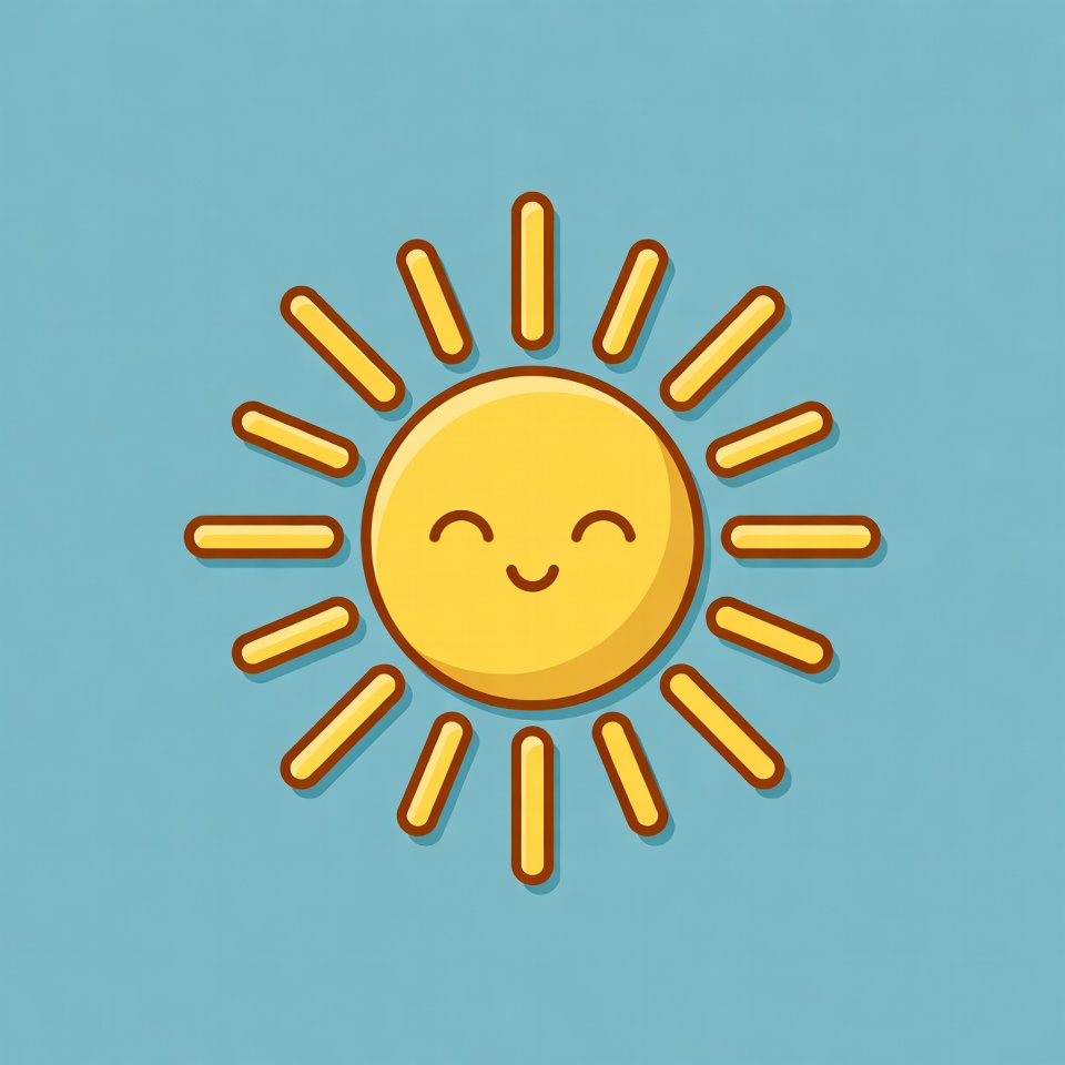 Smiling Cartoon Sun on Blue Background