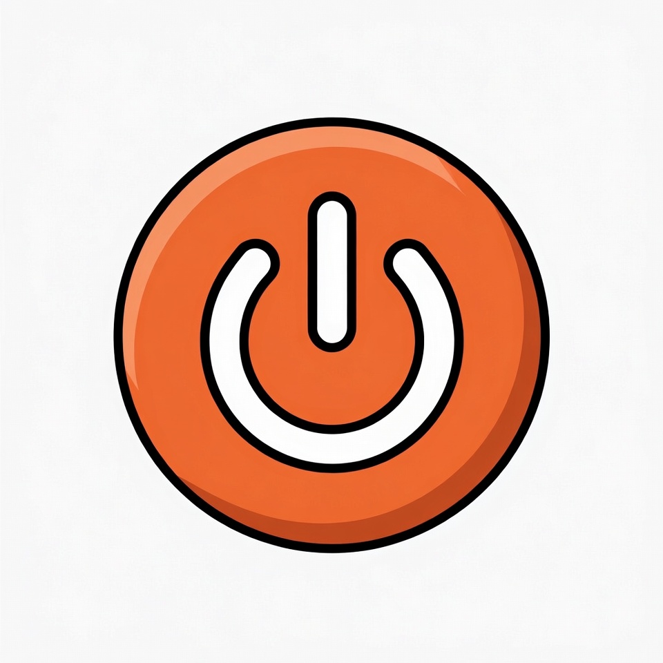 circular button, clipart, graphic, icon, illustration, isolated background, logo, on button, orange button, power icon, power on, symbol, ui element, white outline, power button