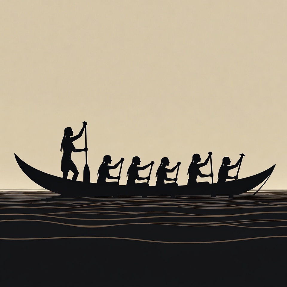 Indigenous Canoe Silhouette with Paddlers
