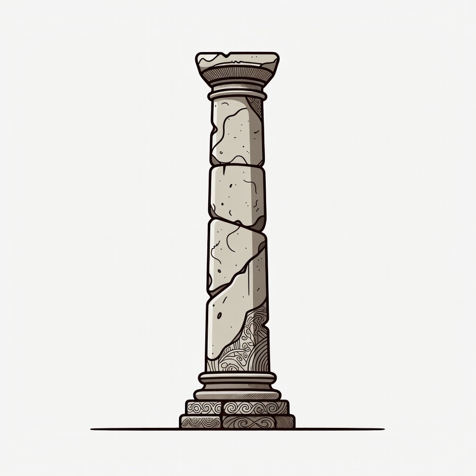 Doric column, ancient ruin, architecture, classical column, clipart, column vector, cracked stone, decorative capital, drawing, historic architecture, illustration, isolated background, line art, ruined pillar, stone column, stone pillar, temple column, weathered column, white background, ancient column