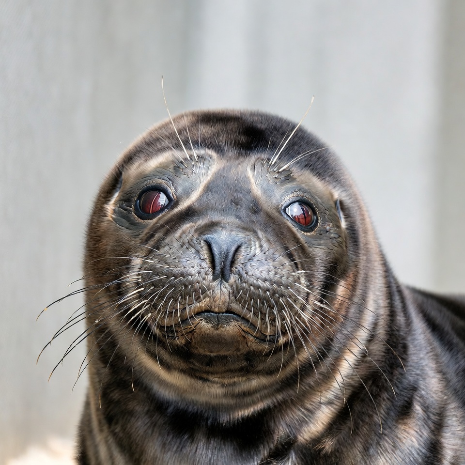 animal, baby seal, close-up, cute seal, dark fur, furry animal, glossy eyes, isolated background, marine mammal, pinniped, portrait, red eyes, sea lion, seal, seal face, snout, whiskers, wildlife, zoo animal, harbor seal