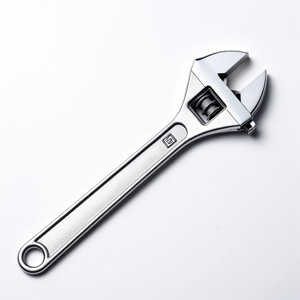 DIY tool, adjustable jaw, hand tool, hardware, isolated, metal tool, plumbing tool, repair tool, shiny metal, silver wrench, tool, white background, wrench, wrench handle, adjustable wrench