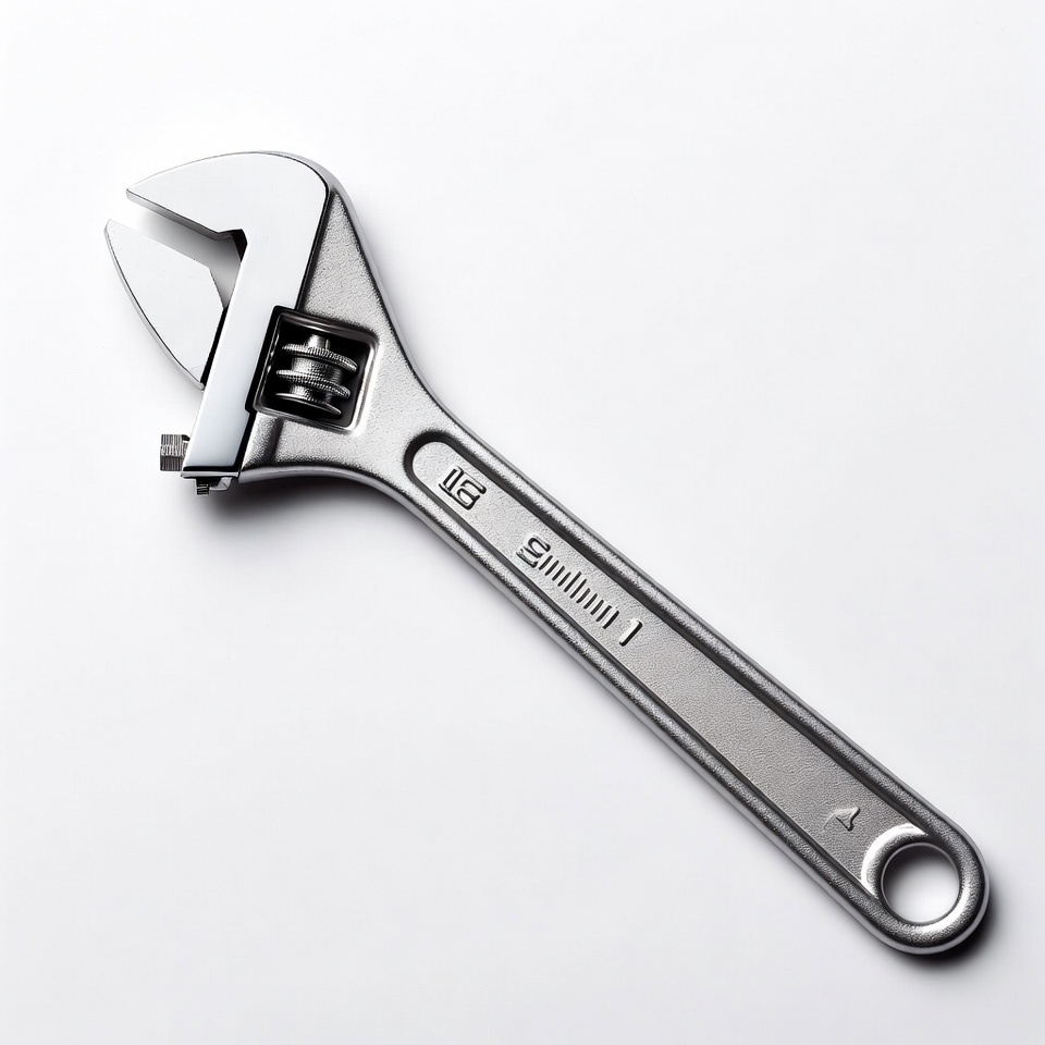 hand tool, hardware, isolated, mechanic tool, metal tool, pliers wrench, repair tool, shiny wrench, silver wrench, tool, white background, wrench, adjustable wrench