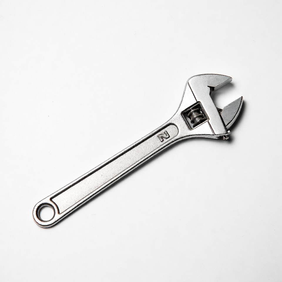adjustable jaw, hand tool, isolated background, mechanic tool, metal tool, plumbing tool, repair tool, shiny wrench, silver wrench, tool, white background, wrench, adjustable wrench