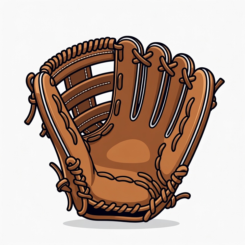 baseball, baseball mitt, brown glove, catchers mitt, clipart, glove, illustration, isolated background, laces, leather glove, mitt, pocket, softball, sports equipment, stitching, vector art, baseball glove