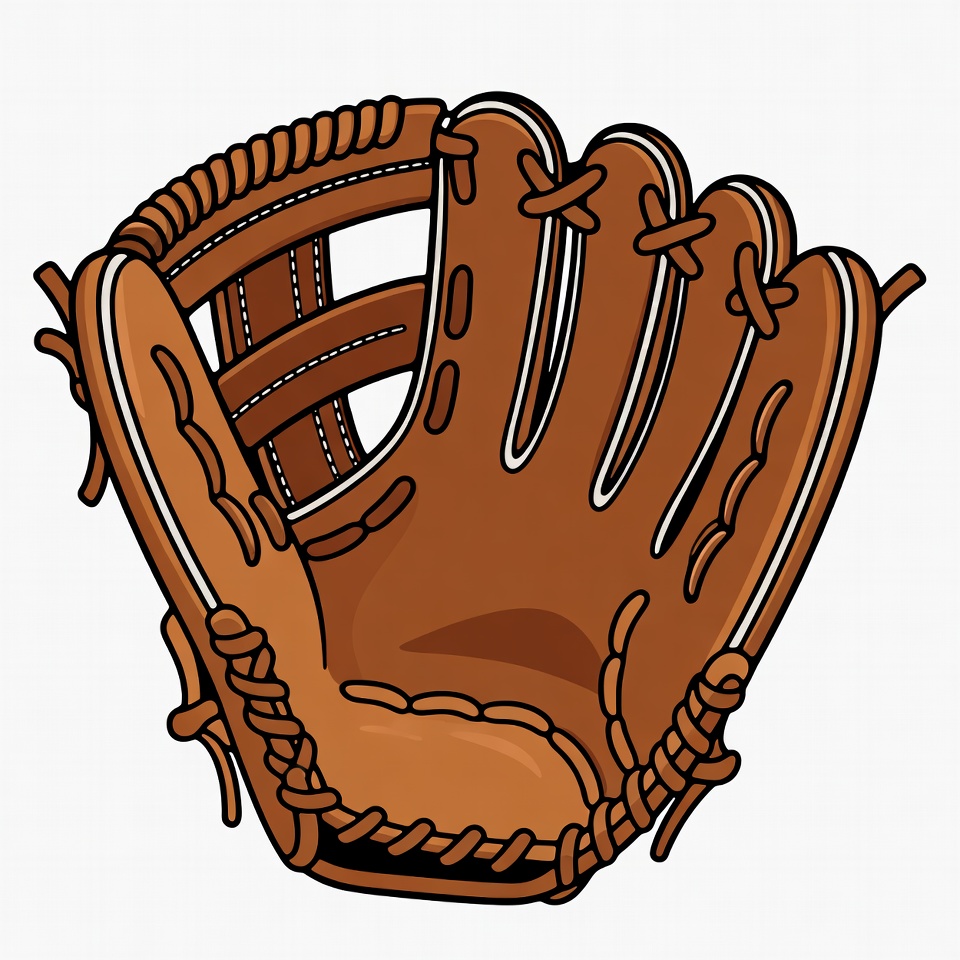 baseball gear, baseball mitt, brown glove, catch glove, catcher's mitt, clipart, hand glove, illustration, isolated background, laces, leather glove, sports equipment, vector art, white stitching, baseball glove