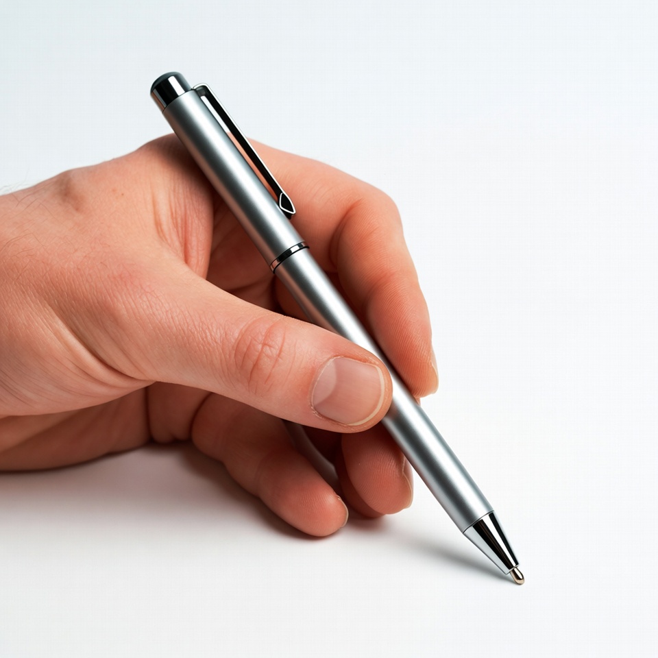 Hand holding silver pen
