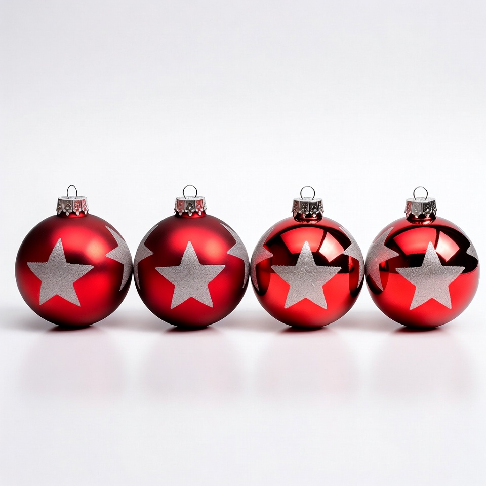 Four Red Christmas Ornaments with Stars