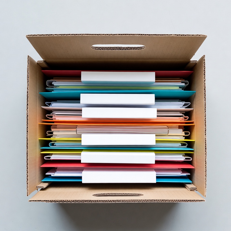 Open Cardboard Box with Colorful Folders