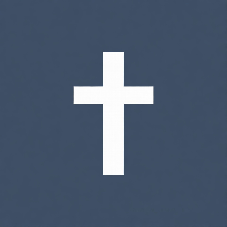 A simple white Christian cross is centered on a solid navy blue background. The cross features clean, bold lines with equal horizontal and vertical arms. The design is minimalist and isolated.