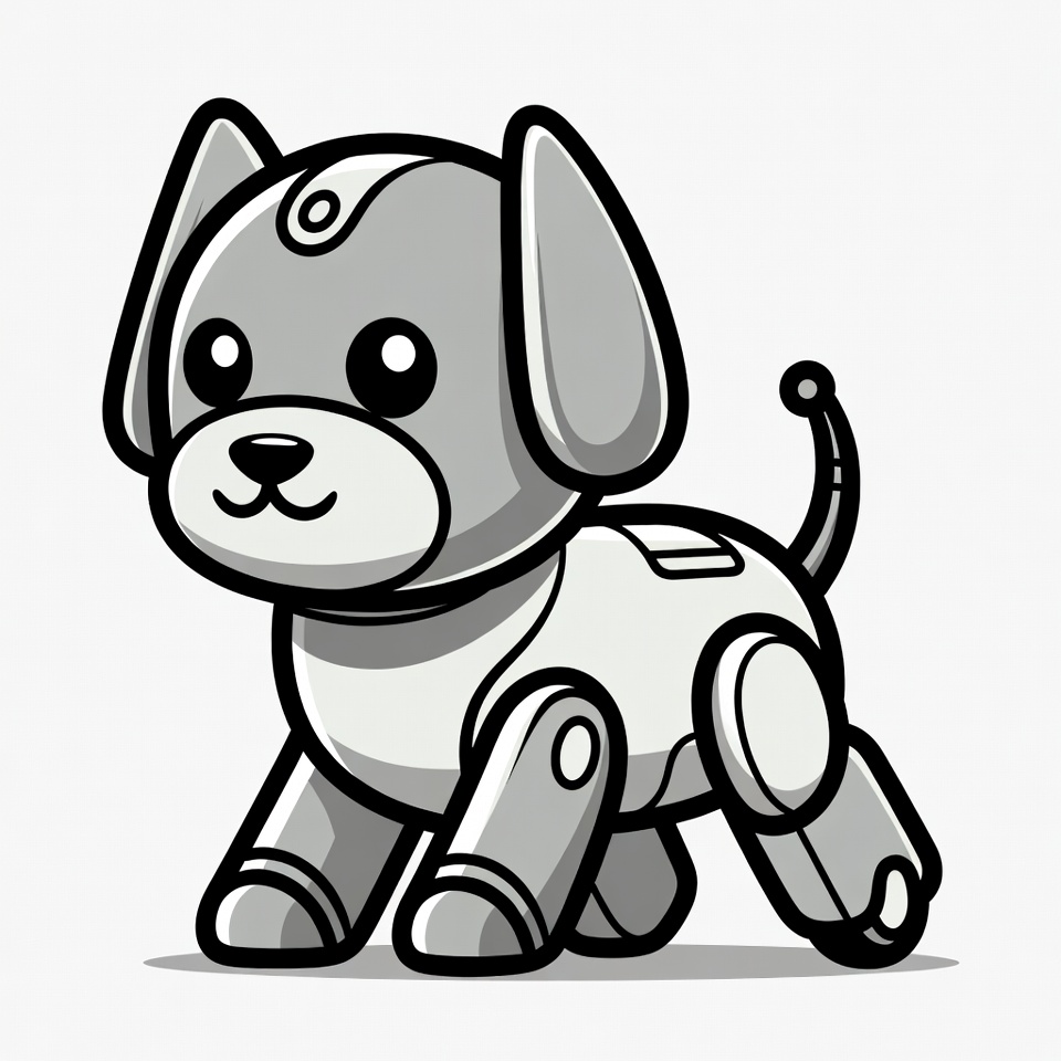 antenna tail, big eyes, cartoon dog, clipart, cute robot, dog robot, floppy ears, gray robot, illustration, isolated background, kawaii robot, mechanical dog, robot animal, robot legs, robotic dog, sci-fi dog, smiling dog, toy robot, vector art, robot dog