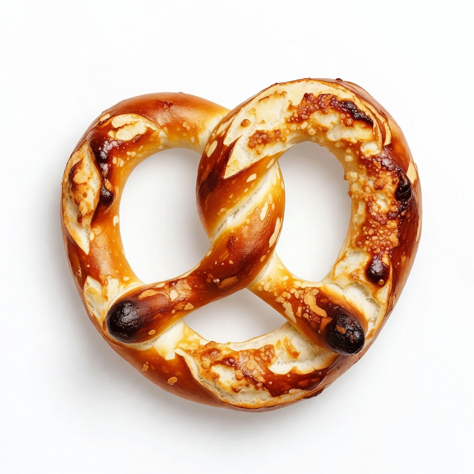 baked pretzel, bakery, bread, browned pretzel, dough, food, food photography, fresh pretzel, golden pretzel, isolated pretzel, pastry, pretzel knot, salted pretzel, shiny crust, snack, soft pretzel, top view, twisted pretzel, white background, pretzel