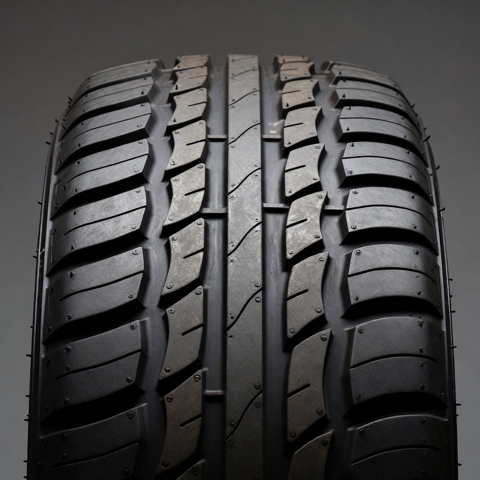Black Car Tire on Gray Background
