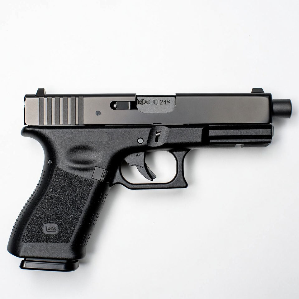 GLOCK logo, Gen 4, Glock 19, SP00924, barrel, black pistol, firearm, grips, gun, handgun, isolated, semi-automatic, silencer, slide, suppressor, trigger, weapon, white background, Glock pistol