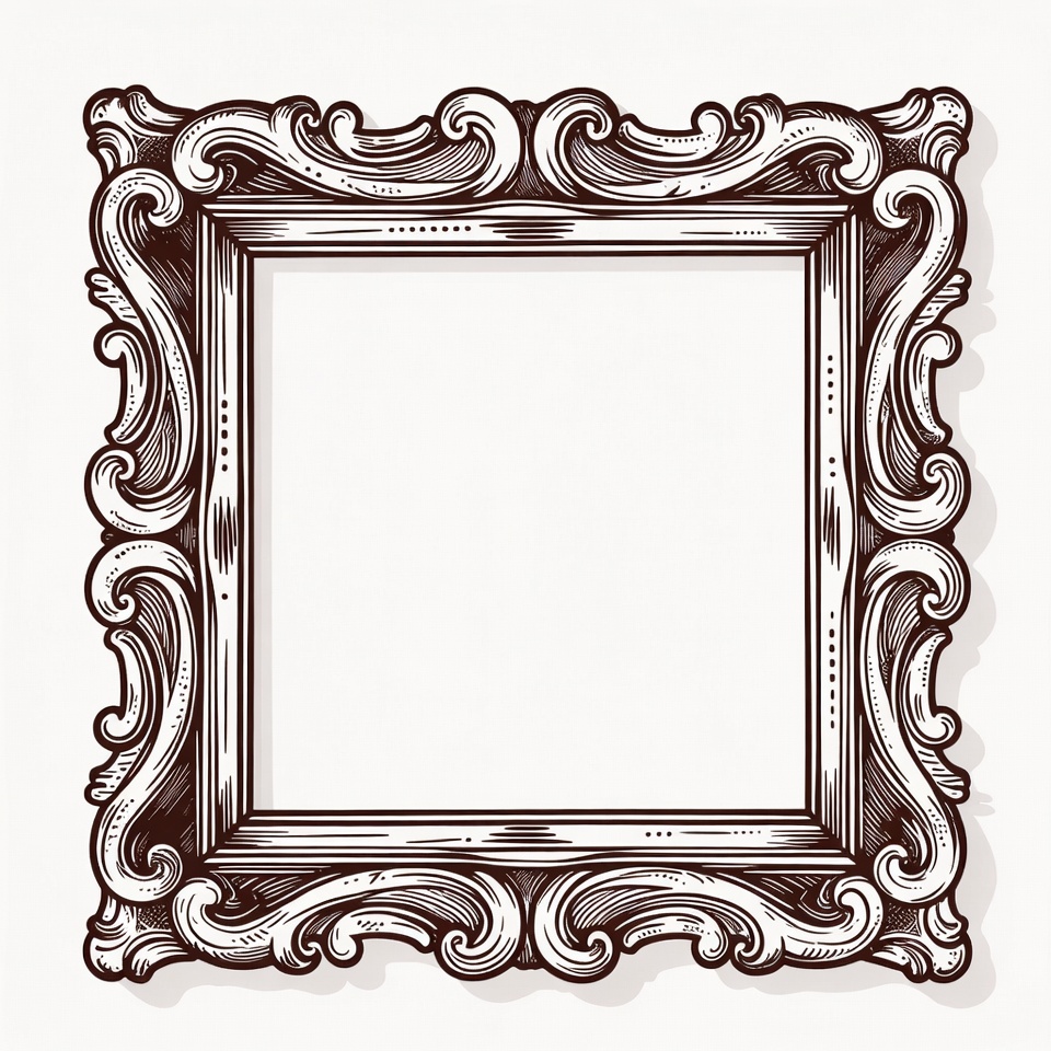 artistic frame, baroque frame, blank frame, clipart, decorative frame, elegant frame, empty frame, floral pattern, illustration, isolated background, line art, ornate frame, rectangular frame, sketch, swirling design, vector art, vintage frame, white background, picture frame