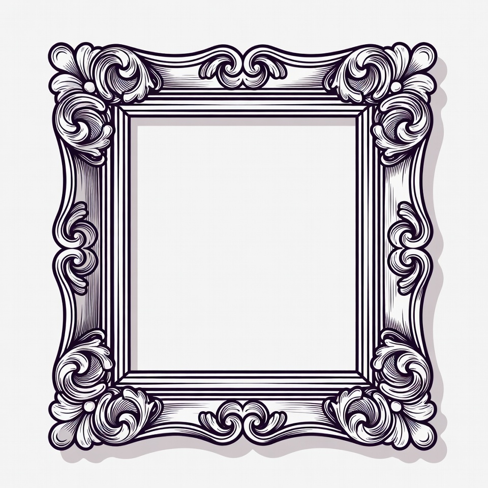 artistic frame, baroque frame, blank frame, clipart, decorative frame, empty frame, engraving style, fancy frame, floral design, gold frame style, illustration, isolated background, line art, ornate frame, rococo frame, scrollwork, vector art, vintage frame, white background, picture frame