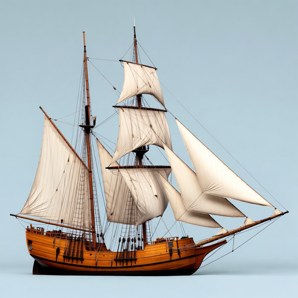 blue background, boat model, frigate, historical ship, hull, isolated background, maritime, masts, nautical, pirate ship, rigging, scale model, schooner, seafaring, ship model, tall ship, vessel, white sails, wooden ship, sailing ship