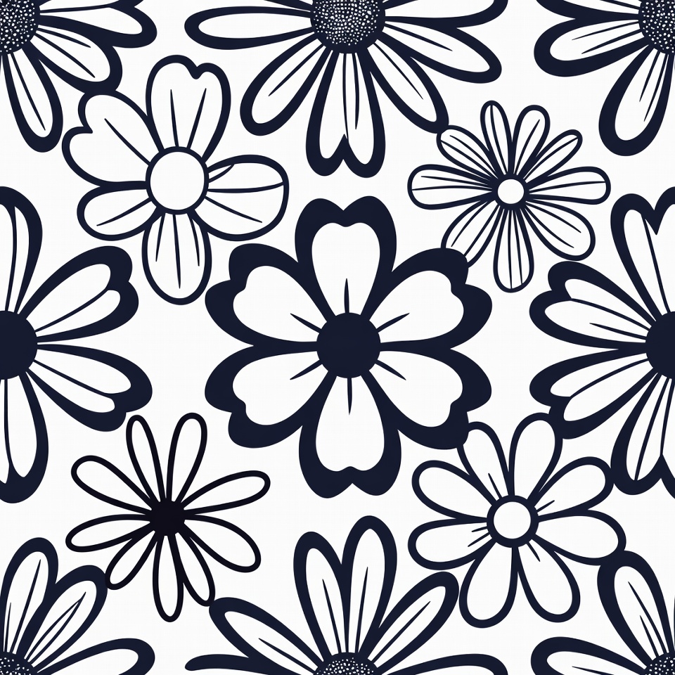 Black White Daisy Flower Pattern