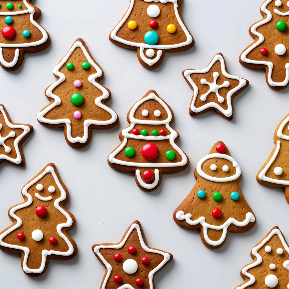 Christmas cookies, Christmas shapes, Christmas tree cookie, baked goods, bell cookie, candy dots, cookie shapes, festive treats, gingerbread bell, gingerbread figures, gingerbread star, gingerbread tree, green icing, holiday baking, holiday cookies, icing decorations, red icing, star cookie, white background, white icing, gingerbread cookies