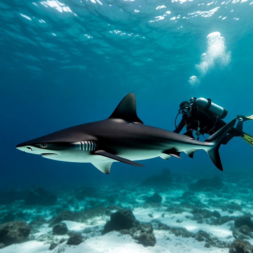 Diver Swimming with Blacktip Shark