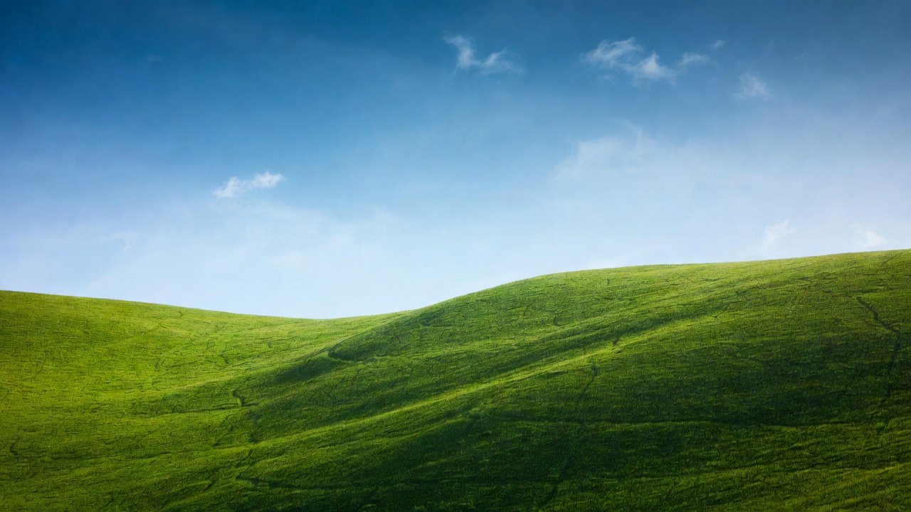 blue sky, clear sky, countryside, field, grass, grassy hills, hillscape, landscape, lush grass, meadow, nature, outdoors, rolling hills, scenery, scenic view, sky, smooth slopes, vibrant green, white clouds, green hills